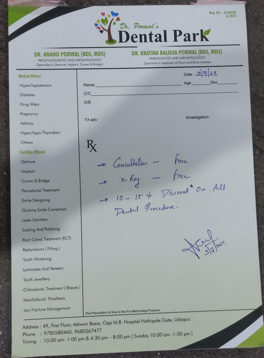 - Consultation Free, X-Ray Free, 10-15% Discount on All Dental Pro