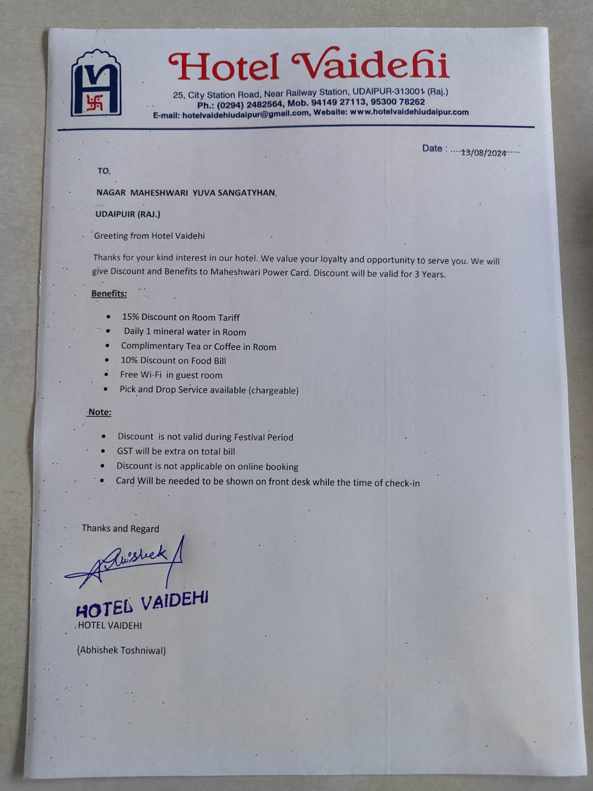 - 15% Discount on Room Tariff (Discount Not Valid During Festival Season)